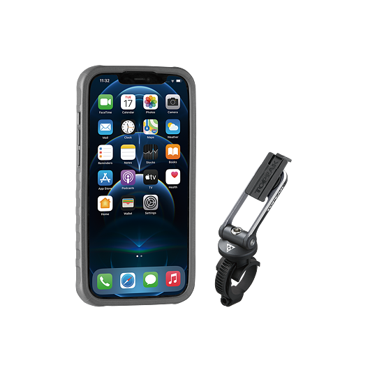 Pouzdro RideCase pro iPhone 12 Pro Max má protiskluzový, vysoce kvalitní technický polymer/gumový exoskelet odolný proti poškrábání, a který bezpečně drží váš telefon na cestách. Jeho plné nastavení úhlu umožňuje sledování v režimu na výšku nebo na šířku a integrovaný výklopný stojánek pro sledování aniž byste jej museli při jízdě brát do ruky. Kompatibilní s nabíjecím Lightning kabelem.