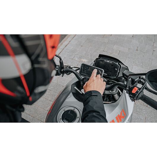 Pouzdro RideCase pro iPhone 15 má protiskluzový exoskeleton z vysoce kvalitního technického polymeru a pryže, který je odolný proti poškrábání a bezpečně drží telefon na cestách. Jeho plné nastavení úhlu umožňuje prohlížení v režimu na výšku nebo na šířku a integrovaný flipový stojánek pro prohlížení po jízdě bez použití rukou. Kompatibilní s nabíjením typu C.