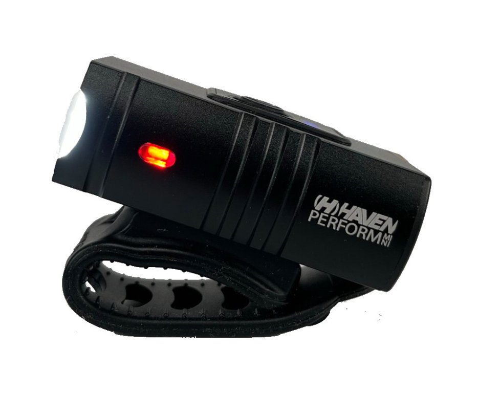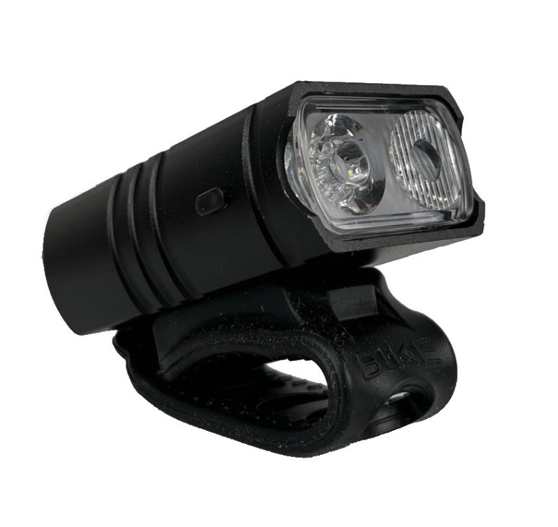 Silné, ve všech směrech nastavitelné přední světlo s jistým uchycením na řidítka i vidlici je vybaveno dvěma silnými LED diodami, baterií nabíjenou přes USB a šesti režimy svícení: