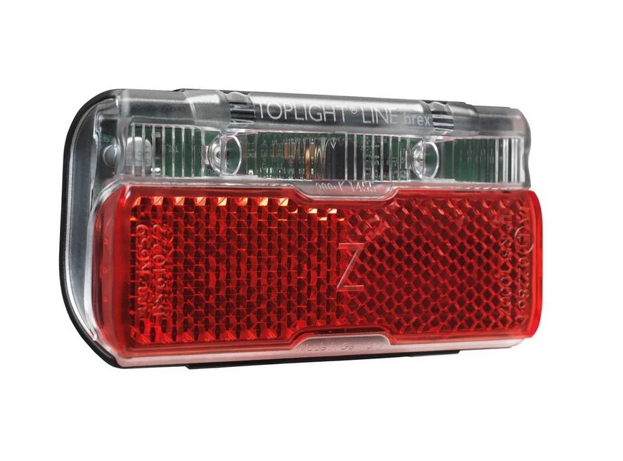 b&m Zadní světlo Toplight Line brex pro elektrokola Funkce brzdového světla se senzorovou technologií (signální kabel z brzdové páčky není nutný) s režimem plné brzdy s páskovým světlem Rozteč šroubů 50 mm s kontakty zástrčky pro montáž na nosič