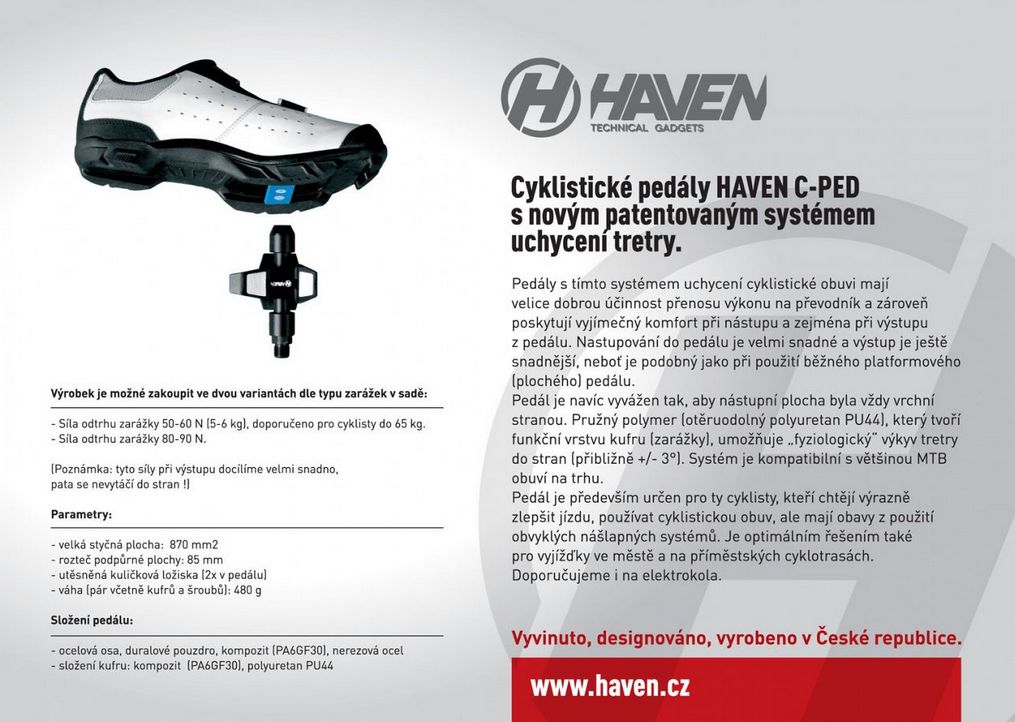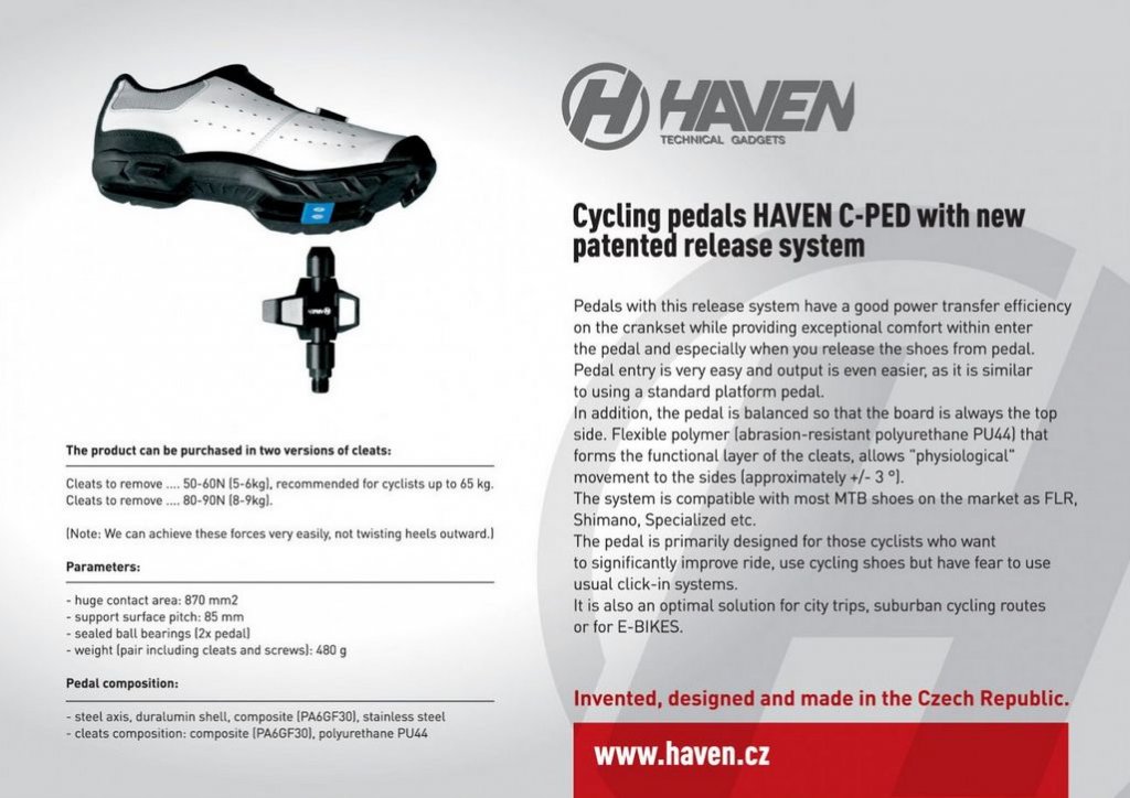 Cyklistické pedály HAVEN C-PED s novým systémem uchycení tretry
