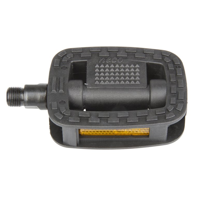 Klasické protikluzové pedály Materiál: plast Ložiska: kuličková Osa: 9/16" borová ocel Rozměry: 93 x 73 mm Barva: černá Odrazky: ano Hmotnost: 360 g (bez odrazek) Balení: servisní v sáčku Určeno pro odborný servis