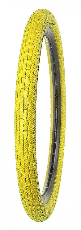 Plášť Kenda KRACKPOT, o rozměru 20x1,95 se vzorkem K-907, patka s drátem. Určeno pro závodní freestylové kola. Barva žlutá