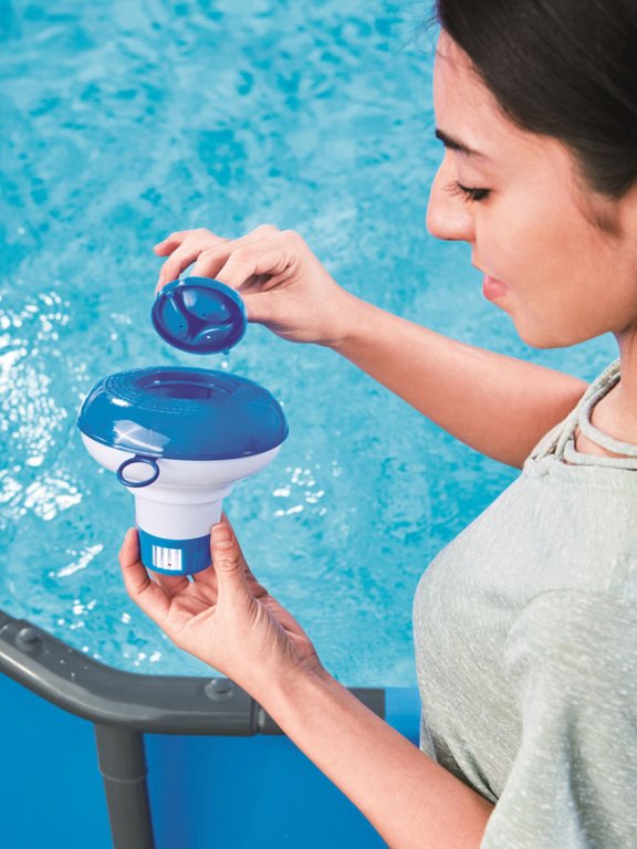 • Možnost nastavení rychlosti uvolňování chemikálií otáčením uzávěru v horní části plováku.