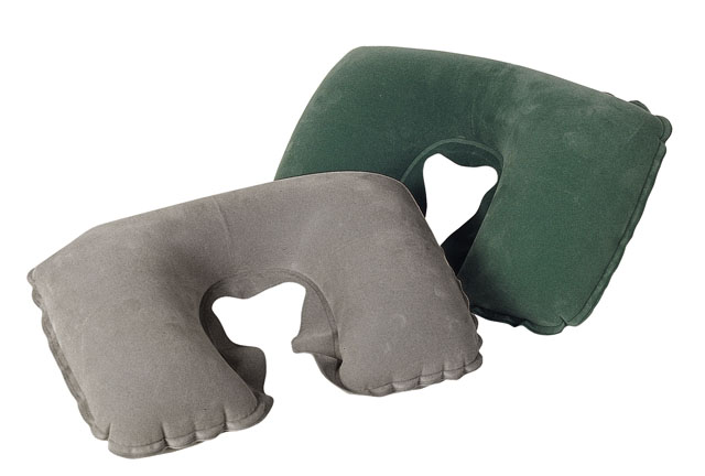 Nákrčník cestovní nafukovací, semišový, 46 x 28 cm.