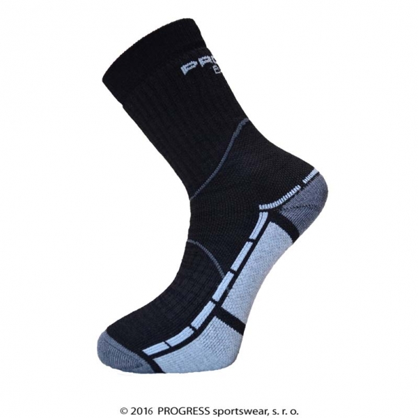 Zesílená pata, špička a nárt, zpevněné chodidlo, elastický prvek kolem kotníku kvůli fixaci, odvětrání. Vnitřní plyš na exponovaných místech, dobrý odvod vlhkosti.