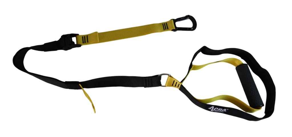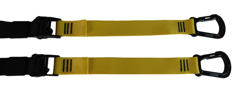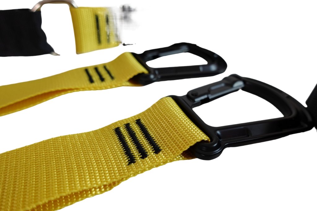 - Prodlužovací popruh s karabinou: Tento popruh umožňuje přidat délku k základním popruhům.