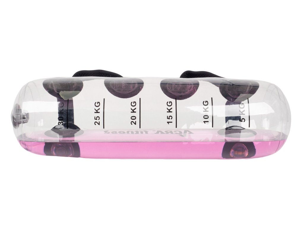 Vodní posilovací vak Acra Power Aquabag XL 35 litrů je praktická cvičební pomůcka pro domácí trénink, kterou stačí naplnit vodou a můžete začít cvičit. Tento vodní posilovací vak je skvělou alternativou k tradičním činkám, vhodný pro ty, kteří chtějí cvičit silově, ale nechtějí doma skladovat těžké činky. Je ideální i na cesty - nepotřebujete vozit těžké činky a přesto si můžete dopřát kvalitní trénink. Potřebujete pouze přístup k vodě. Sám o sobě je vaku velmi lehký, ale po naplnění vodou může dosáhnout hmotnosti až 35 kg. Vak je vybaven dvěma typy poutek pro snadný úchop a má ukazatele pro přesné naplnění, čímž si můžete zvolit požadovanou zátěž. Díky tomu je Power Aquabag univerzální pomůcka pro muže i ženy, vhodná pro silový trénink, výbušnost i zlepšení kondice. Manipulace: s vakem je velmi snadná, vhodná pro každého. Stačí ho naplnit vodou do požadované hmotnosti, uzavřít a dofouknout pumpičkou, která je součástí balení. Výhodou vodního posilovacího vaku jsou jeho dvě pevná poutka, která umožňují lepší kontrolu nad cviky a zajišťují, že vám vak při tréninku nevypadne. S vakem můžete provádět různé cviky jako dřepy, výpady, tahové i tlakové cviky. Vzhledem k vodní náplni vak klade větší nároky na stabilitu, takže procvičíte různé svalové partie. Je ideálním pomocníkem pro trénink celého těla, doma i na dovolené. Materiál: PVC Rozměry:
