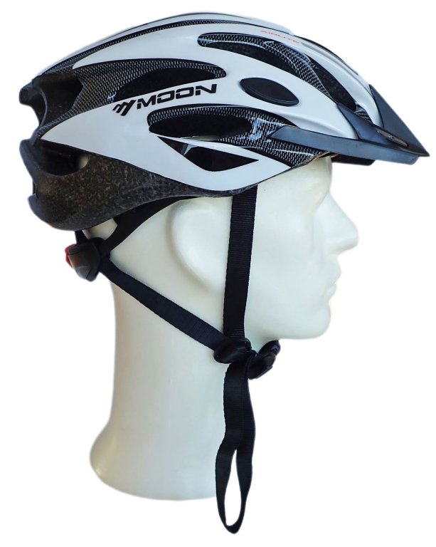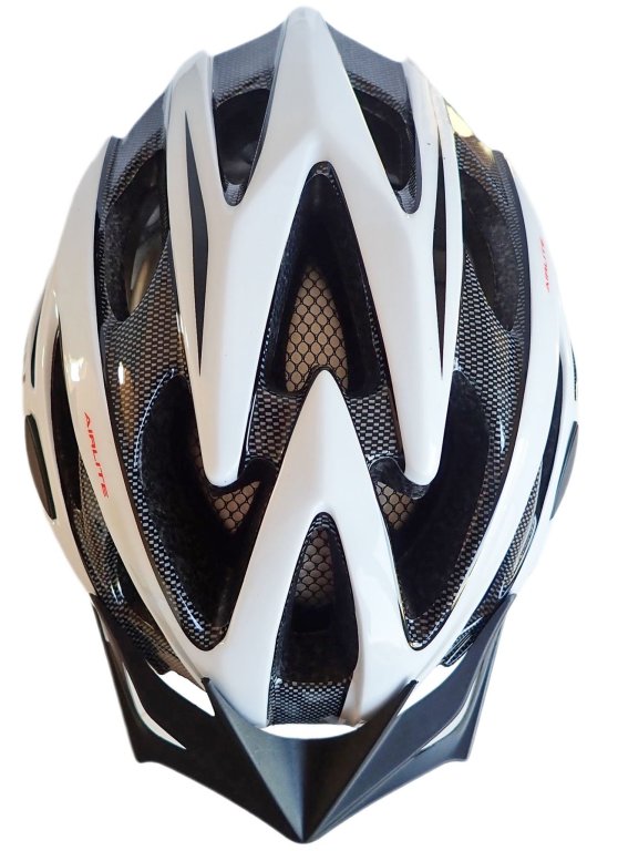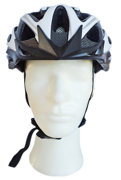 Cyklistická helma - odlehčená - BÍLÁ, 25 větracích otvorů, stahovací pásek se šroubem okolo hlavy pro dokonalé upnutí, demontovatelný clonící štítek, síťka proti hmyzu. Chladivá měkká výplň uvnitř helmy zvyšující komfort pro jízdu v teplém počasí.