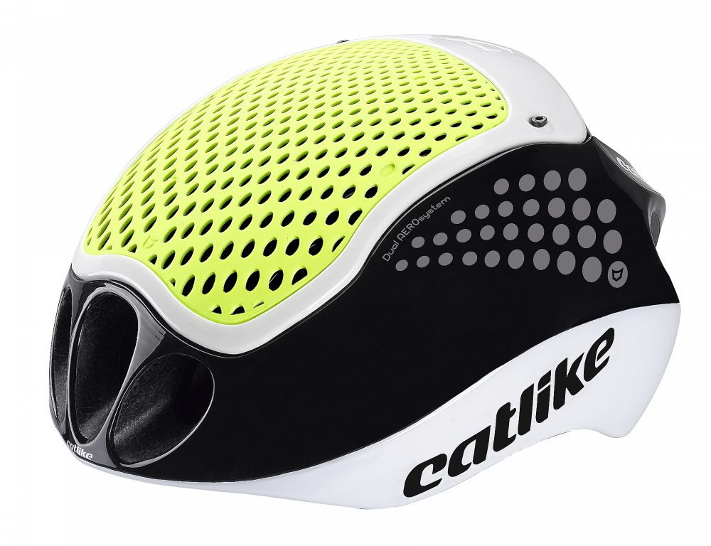 Cloud 352 je zcela nový koncept cyklistické a triatlonové přilby s „Dual AEROSystémem“, technologií, která umožňuje přizpůsobení přilby prostředí, ve kterém se jezdec pohybuje pomocí vyměnitelných krytů dávajícím přilbě nové možnosti. Přilba Cloud 352 byla vytvořena pro triatlonisty a cyklisty, kteří chtějí maximalizovat svůj výkon s pomocí zlepšení aerodynamiky bez obětování skvělého odvětrání. Myšlenkou vývoje přilby bylo dosažení co nejlepších aerodynamických vlastností za všech podmínek. Vždy se staráme o co nejlepší ventilaci pro danou aktivitu, a proto jsme vyvinuli kombinaci dvou vyměnitelných krytů – Dual AEROSystem. Oddělení výzkumu a vývoje Catlike zkoumalo nejprve chování rozdílných tvarů krytů pro nalezení aerodynamicky co nejvhodnějšího sklonu ventilačních otvorů. Vznikl tak „prodyšný síťovaný kryt“ s celkem 352 otvory umožňujícími konstantní proudění vzduchu při zachování výjimečné aerodynamiky. Vznikla tak nejodvětranější aerodynamická přilba na světě. Jednoduchým systémem lze prodyšný síťovaný kryt vyměnit za VeloDrom kryt, který poskytuje ještě lepší aerodynamické vlastnosti díky zcela hladkému povrchu. Mimoto jezdci dodává zvýšenou ochranu hlavy a ochranu před deštěm. I při použití plného VeloDrom krytu je odvětrání přilby Cloud 352 výjimečné díky Dual Flow technologii, která umožňuje proudění vzduchu kanály mezi předními a zadními ventilačními otvory. Hlava – hlavní snímač teploty těla – má tak zajištěné nepřetržité ochlazování. Nová technologie Dual AEROSystem tak umožňuje adaptaci přilby přesně podle potřeb jezdce s jistotou získání maximální aerodynamiky a nepřetržité ventilace. Cloud 352 je vybaven novým rozdělovačem popruhů pod ušima a umožňuje tak jednoduché nastavení popruhů. Díky jeho pozici lze jednoduše nastavovat popruhy přímo pod bradou. Nový systém je jednoduchý, spolehlivý a rychlý. Viditelnost cyklisty na silnici je důležitý aspekt při jízdě v noci či za zhoršených viditelnostních podmínek. Protože je pro nás bezpečnost na prvním místě, je model Cloud 352 vybaven reflexními nálepkami pro rychlou detekci jezdce ostatními účastníky silničního provozu. Velikosti: SM 54-56cm MD 57-59cm LG 60-62cm