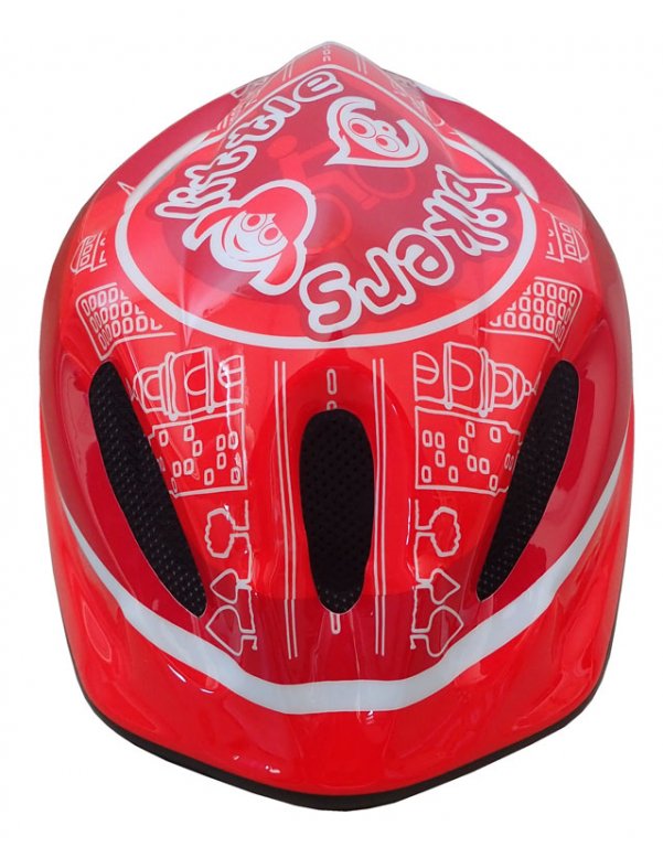 Cyklistická helma dětská s potiskem, 5 velkých větracích otvorů, síťka proti hmyzu, měkká výplň s chladivými účinky uvnitř helmy, stahovací pásek se šroubem okolo hlavy pro dokonalé upnutí.