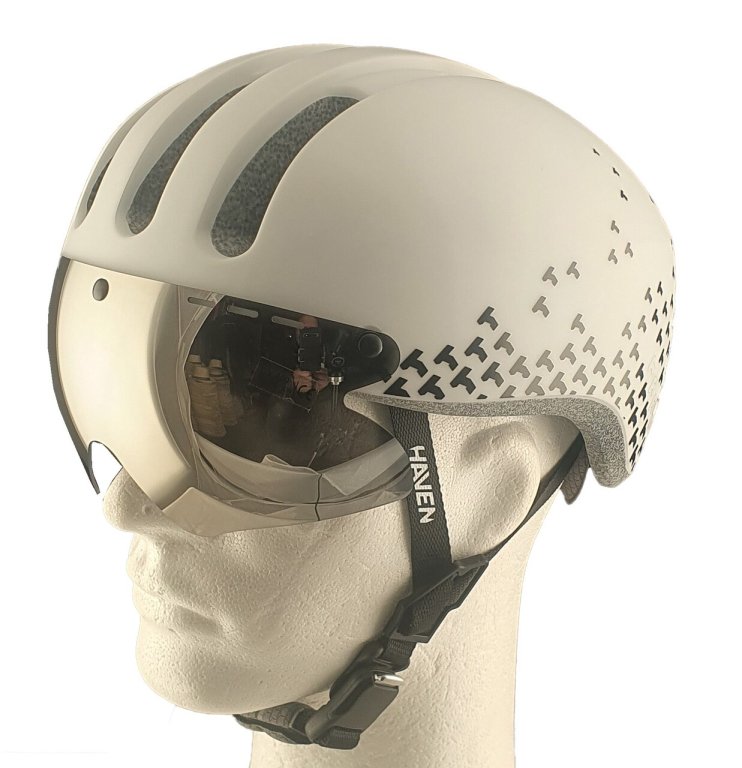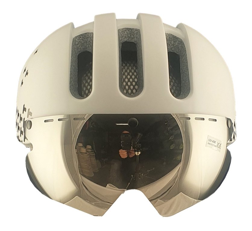 Helma s decentním plastovým štítkem nebo zrcadlovým sklem designově patřící do skupiny městských přileb, která lze ale bez problémů použít i pro rychlostní silniční cyklistiku. Skla jsou výměnná, uchycená jednoduše pomocí magnetu a je možné dokoupit i další varianty.Pozor: k helmě je dokonce možné zakoupit i fotochromatické sklo, které mění své zatmavení dle aktuálních slunečních podmínek!Zásadní výhoda pro uživatele dioptrických brýlí ... nemusíte používat speciální sportovní dioptrické brýle, ale vaše klasické. Sluneční nebo jinésklo máte přímo na helmě.