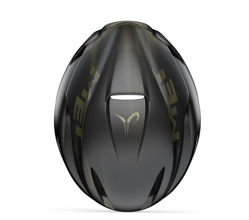 S ostrým, aerodynamickým tvarem je helma nyní výraznější a vylepšená, s unikátní kombinací černé—symbolizující elegance a autoritu—a zlaté, reprezentující sezónu plnou vítězství.