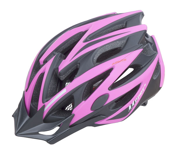 Sportovní přilba s odnímatelným štítkem a síťkou proti hmyzu. Konstrukce In mold, nastavení obvodu pomocí kolečka, hmotnost 255g, 24 větracích otvorů.
