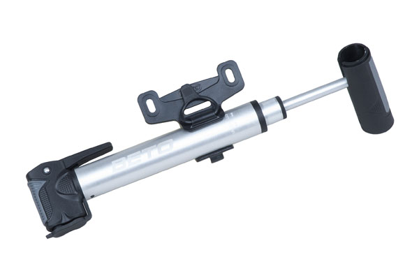 Hliníková teleskopická pumpa s pojistnou páčkou pro pumpování. Duální hlava pro AV/FV ventilek.Výklopná pogumovaná T-rukojeť. Přepínatelný velký tlak/velký objem. Délka 25cm. Max.tlak 100Psi.