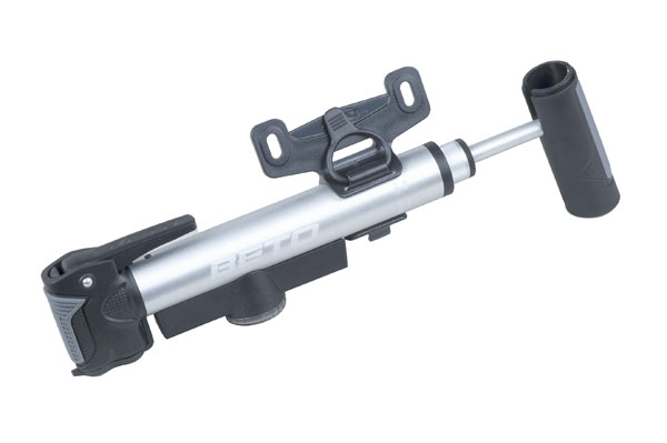 Hliníková teleskopická pumpa s manometrem a pojistnou páčkou pro pumpování. Duální hlava AV/FV. Výklopná pogumovaná T- rukojeť a hlava pro pohodlnější pumpování. Max tlak 100Psi. Přepínání velký tlak / velký objem. Délka 25cm.