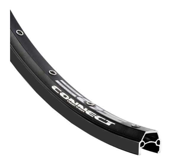 dvojstěnný tříkomorový ráfek upravený pro krosové, trekingové a e-kola, speciální směrové otvory, 32 děr, výška ráfku 20mm, otvor na ventilek AV, ERD 602, hmotnost 598g