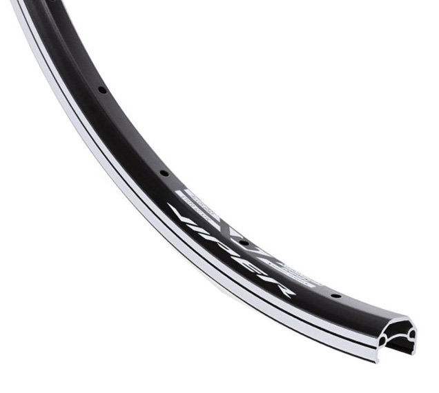 foto ilustrační!!! 26" (559x19) dvojstěnný tříkomorový plášťový ráfek, 32 děr, pro V- brzdy, broušený bok, jednoduchý nýt otvor pro ventilek: 8,5 mm, výška ráfku: 18 mm, materiál: Al hliník, hmotnost: 472 g