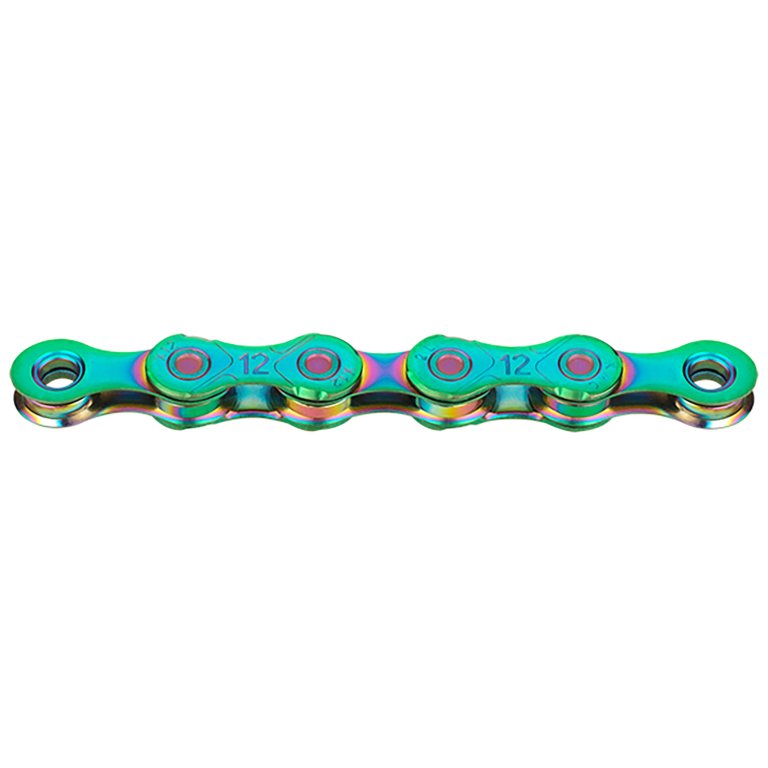 řetěz KMC X12 aurora zelená technologie X Bridge - bezproblémové řazení kompatibilní se systémy Shimano, Sram, Campagnolo včetně spojky 12 rychlostí 126 článků 1/2"x11/128" originální balení v krabičce