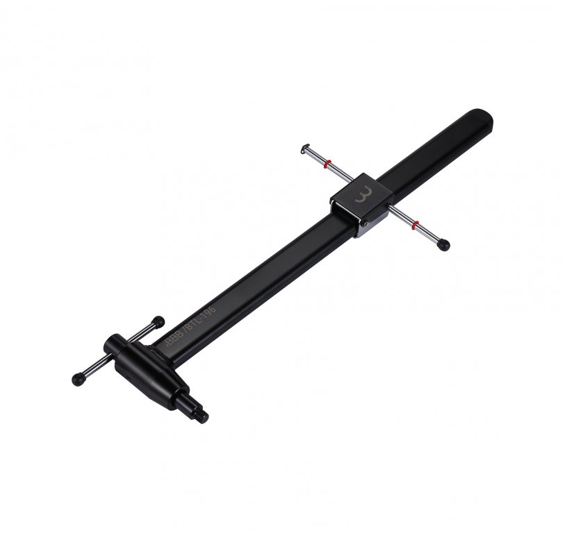 Nástroj pro vyrovnání podložek přehazovačky. Dlouhý a pevný profil s přesným kalibrem. Gumové konce chrání ráfek před poškrábáním. Vyrobeno z vysoce kvalitní oceli pro dlouhou životnost. Hmotnost: 295 gramů
