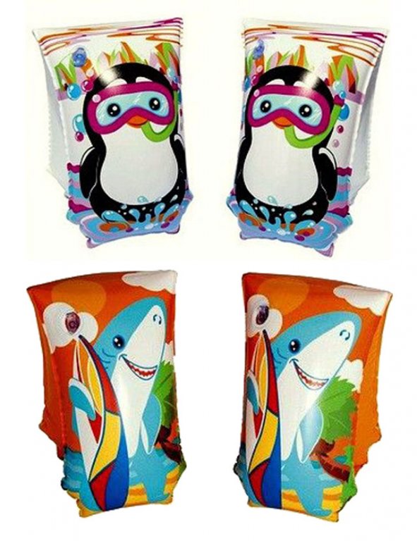 Plavecké rukávky potištěné velké, vhodné pro pro děti 5 - 12 let. 2 kruhy potisku - žralok a tučňák - pokud požadujete speciálně jeden z potisků, prosíme o specifikaci v objednávce.