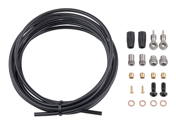 Balení obsahuje: 3 m hadičky 5mm, 2x banjo, 2x gumová krytka, 2x průtokový šroub, 4x kompresní matice, 4x oliva, 2x trn, 4x těsnící podložku na banjo