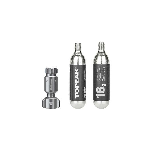 Upevňuje se pod košík na láhev s vodou Ninja s vyměnitelným držákem Cage Mount nebo se používá samostatně s držákem Frame Mount. Balení CO2 FuelPack obsahuje vše, co potřebuje při opravě poškozených duší.