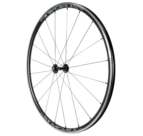 Sada zapletených kol RODI Stradale, 622 x 17, materiál AL 6063, dráty nerez černé, přední kolo rovný výplet 20 drátů, zadní 2 x křížené 24 drátů, hmotnost páru 1836 g, utěsněná kuličková ložiska, na 8/11sp.,