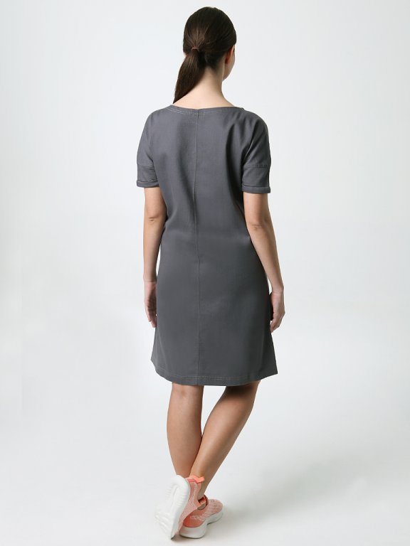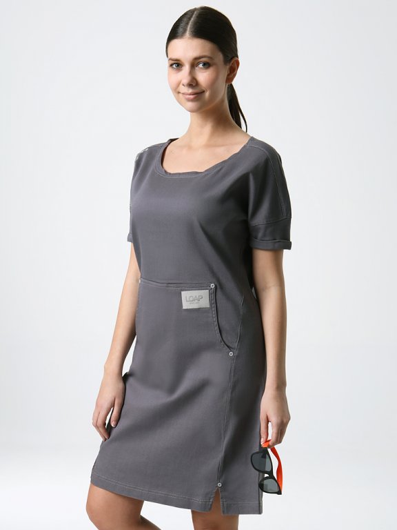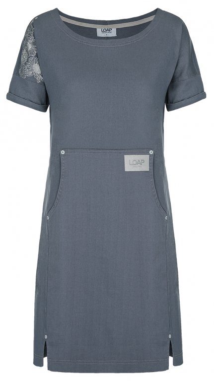 Džínové dámské šaty DEBIE se spadlými rameny mají krátký rukáv, lodičkový výstřih a mírně prodloužený zadní díl s malými rozparky na bocích. Tyto jednobarevné šaty v pohodlném volnějším střihu jsou vyrobené ve vyšší gramáži 290 g/m2 z bavlny (81 %), polyesteru (17 %) a elastanu (2 %). Díky této kombinaci materiálů jsou šaty pevnější a teplejší. Hezky sedí na těle a drží tvar, přesto jsou pružné. Méně se mačkají a rychleji schnou. Středně dlouhé jednobarevné šaty s květinovým potiskem vpředu na rameni mají dvě kapsy, které jsou spojené do tzv. "klokanky". Ráda je obléknete od jara do podzimu, do práce i na volný čas. Perte na 30 °C s aviváží.