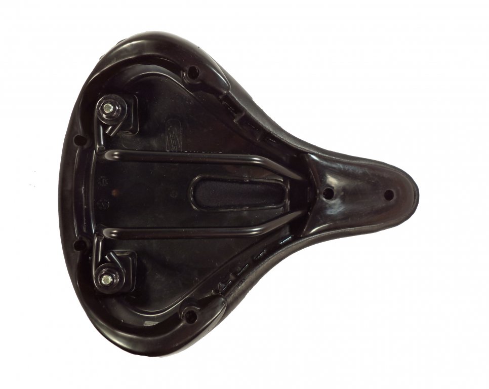 Pohodlné sedlo. Měkká pěna výborně absorbuje nárazy a vibrace. Potah z elegantní dvou-tónové syntetické kůže v šedé a černé barvě. Velice kvalitní švy a nárazníky po stranách chrání nejzranitelnější části sedla.