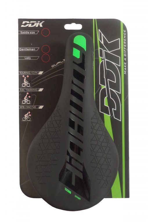 -Sedlo DDK se sportovním designem profilované -Rozměr: 256x138mm -Ocelové vzpěry s měřítkem bez zámku sedla -Tvrdost: středně tvrdé polstrování s gelem -Barva -černo-zelená - matná s lesklým potiskem