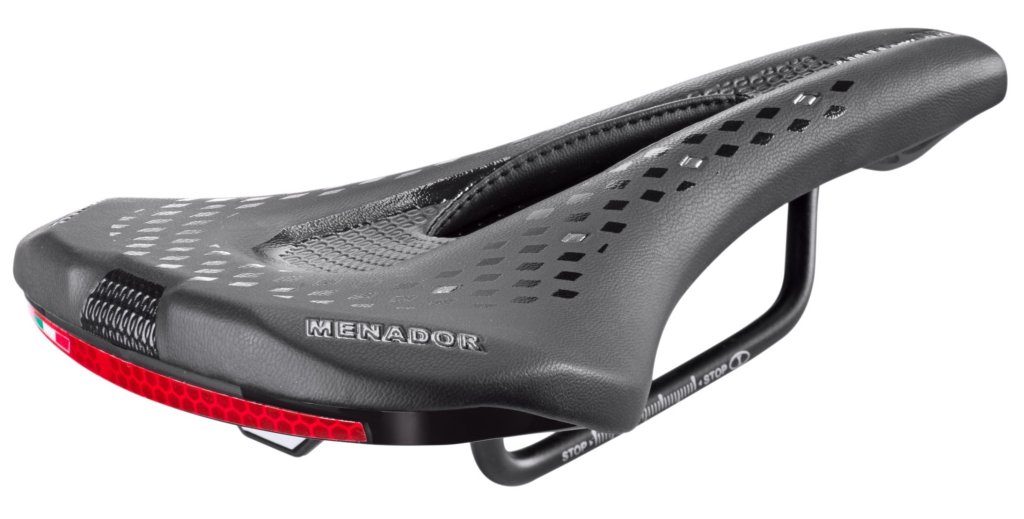 aerodynamická a geometrická linie navržená tak, aby rozložila tlak sedu po celém povrchu sedla, inovativní řešení z hlediska pohodlí a odporu v zadní části;