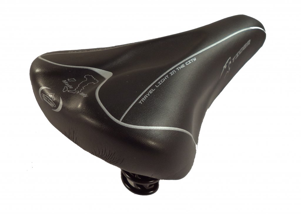 -Pohodlné široké gelové pružinové sedlo určené pro cestovní a městská kola -Rozměr: 270x175mm -Zámek sedla: obsahuje -Materiál: syntetická kůže + Flex PU -Pružiny: obsahuje -Tvrdost - středně měkké -Barva. černá -Hmotnost: 650g -Balení: servisní v sáčku