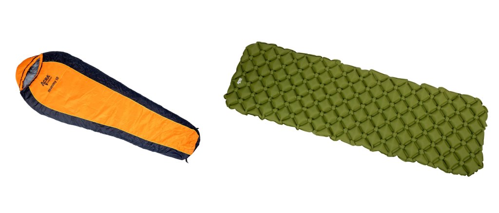 Balení obsahuje Spacák Acra Mummy 10 a karimatku L140ZEL Nafukovací - zelená.