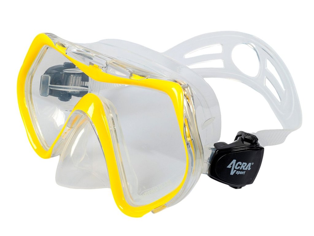 - Potápěčská šnorchlovací maska s panoramatickým výhledem: 180° HD Panoramatický výhled. Vrobená ze čtyř okének pro panoramatický výhled s tvrzeným skleněným zorníkem a hypoalergenním silikonovým lemem, šnorchlovací maska Acra Sport odolá podvodnímu tlaku při potápění a šnorchlování a nabízí maximální pohodlí. Lem potápěčské masky je vyroben z měkkého a pružného silikonu a náustek z potravinářského silikonu je bezpečný, vytváří vodotěsné utěsnění s obličejem každého řidiče a dokonale se připevňuje k ústům bez zvláštního zápachu.