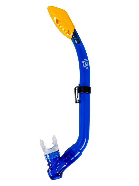 Suchý šnorchl s odolným designem proti stříkající vodě, pokročilý systém proti stříkající vodě potápěčské sady ACRA SPORT pro děti zabraňuje vniknutí vody do šnorchlu a odvzdušňovací ventil umožňuje vyčištění a vypuštění vody ze šnorchlu. Jednoduchý klip umožňuje snadné připevnění suchého šnorchlu k masce
