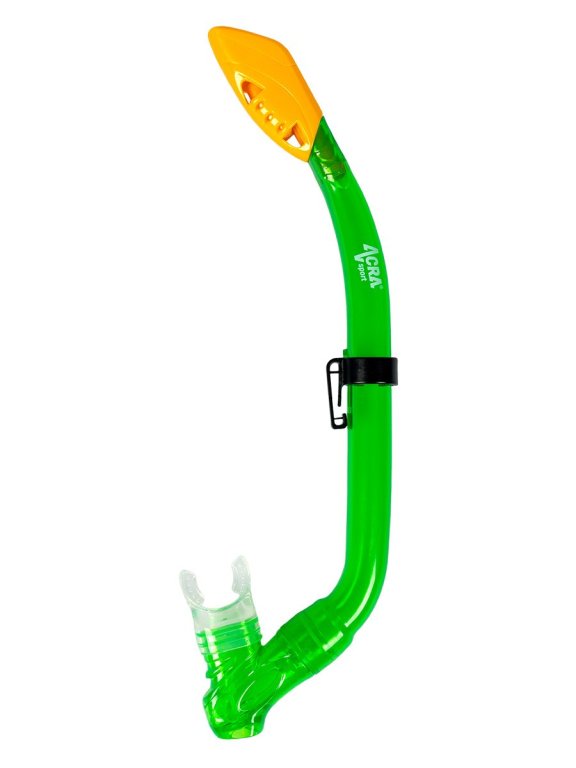 Suchý šnorchl s odolným designem proti stříkající vodě, pokročilý systém proti stříkající vodě potápěčské sady ACRA SPORT pro děti zabraňuje vniknutí vody do šnorchlu a odvzdušňovací ventil umožňuje vyčištění a vypuštění vody ze šnorchlu. Jednoduchý klip umožňuje snadné připevnění suchého šnorchlu k masce