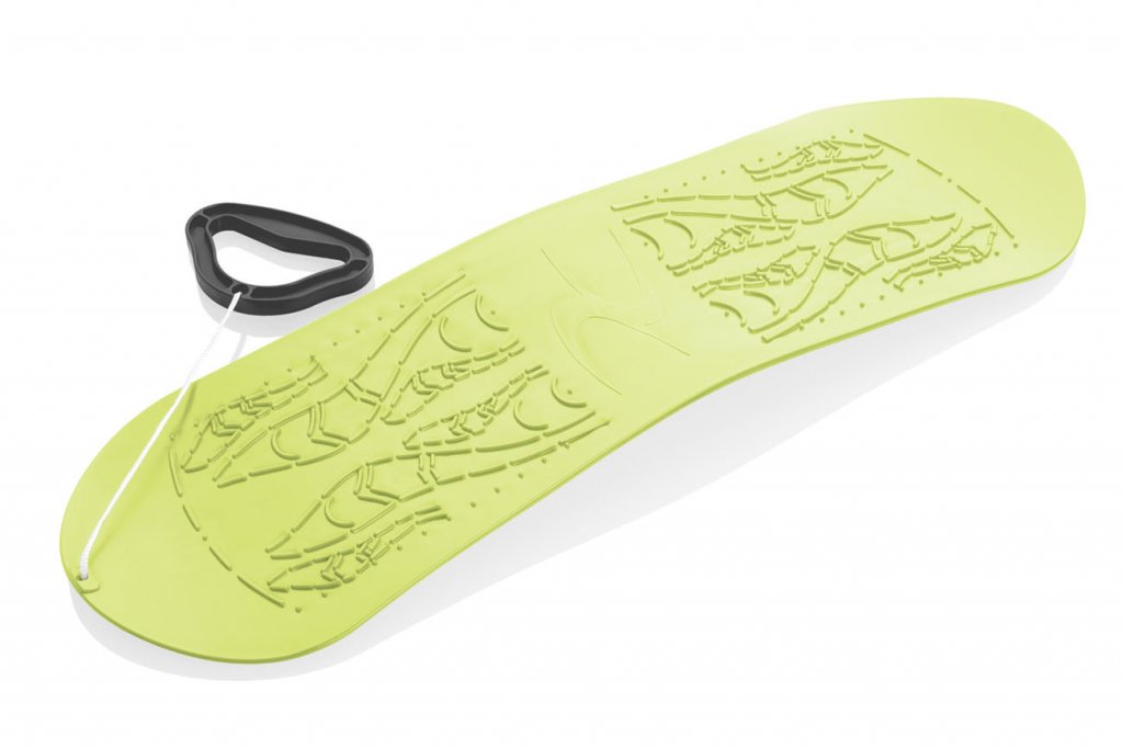 Kluzka - dětský snowboard plastový, určeno pro rekreační sport. Dětský snowboard umožňuje seznámit se se způsobem lyžování na snowboardu, případně jej využít jako klasický klouzák na sněhu. Kluzka je dlouhá 69 cm a na šířku, má 18,5 cm ( měřeno uprostřed kluzky ). K dispozici v barvě limetkové, viz foto.