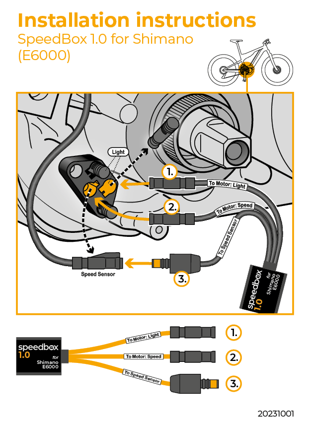 Pokud nemáš na svém kole světla, SpeedBox 1.0 pro Shimano bude neustále zapnutý. Pokud máš namontovaná světla, můžeš svůj tuningový čip libovolně zapínat. Aktivaci čipu SpeedBox 1.0 provedeš na ovládacím panelu elektrokola. Jsou-li světla vypnuta, SpeedBox je aktivován. Funkci čipu jednoduše vypneš aktivací světel.