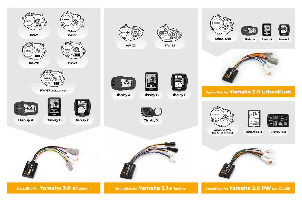 Tuningový čip SpeedBox 2.0 umožňuje deaktivaci omezovače rychlosti elektrokola. Po instalaci čipu se na displeji elektrokola zobrazují reálné údaje, jako je maximální rychlost, průměrná rychlost, denní ujetá dráha a dojezd. S tímto čipem se přípomoc elektrokola vypíná při dosažení rychlosti 50 km/h (31 mph).