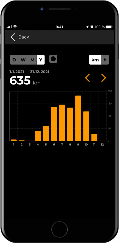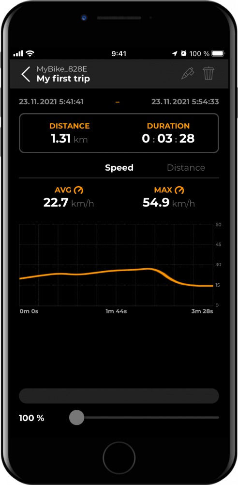 Abyste využili plný potenciál SpeedBox B.Cyclo, připojte se k němu pomocí SpeedBox App ve svém chytrém telefonu s operační systémem iOS nebo Android. Kromě velkého dobře čitelného displeje s jízdními daty (aktuální rychlost, ujetá vzdálenost, čas jízdy, průměrná a maximální rychlost) získáte navíc možnost uložit si pojmenovaný výlet, prohlédnout si denní / týdenní / měsíční / roční statistiky ujeté vzdálenosti a času stráveného jízdou. Samozřejmostí je také zobrazení celkových hodnot (ujetá vzdálenost, čas jízdy, průměrná a maximální rychlost), které se zaznamenávají i při jízdě bez spárování s mobilním telefonem.