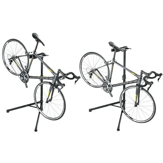 Tento jednoduchý a snadno použitelný montážní stojan nevyžaduje žádnou montáž nebo upínání, které by mohlo poškrábat nebo poškodit povrch sedlové trubky nebo sedlovky vašeho kola. Stačí zvednout kolo, zavěsit sedlovku nebo sedlovou trubku na rameno držáku na kolo a zvednout zadní kolo pro údržbu a seřízení kola. Volitelná přihrádka na nástroje drží nástroje a malé díly blízko pro snadný přístup.