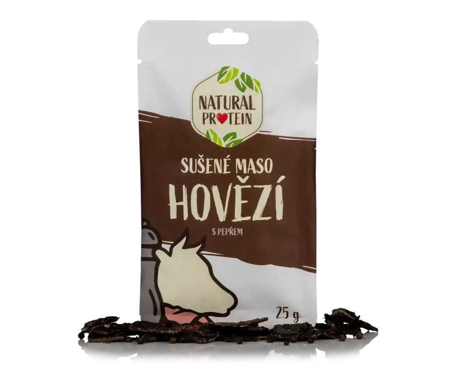 Představujeme vám naši novou lahůdku - hovězí sušené maso s pepřem! Tento výrobek je dokonalou kombinací šťavnatého hovězího masa a pikantního pepře, který vás ohromí svou výraznou chutí.