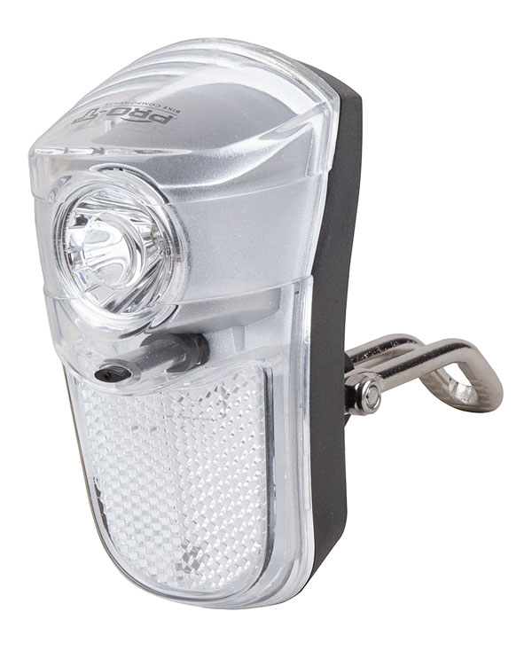 přední světlo na vidlici 12 Lumen, 1 LED dioda, 2 funkce: svícení, blikání, integrovaná odrazka, voděodolné provedení IPX3, rozměr: 97x53x65 mm, 2 baterie typu AA (součásti balení)