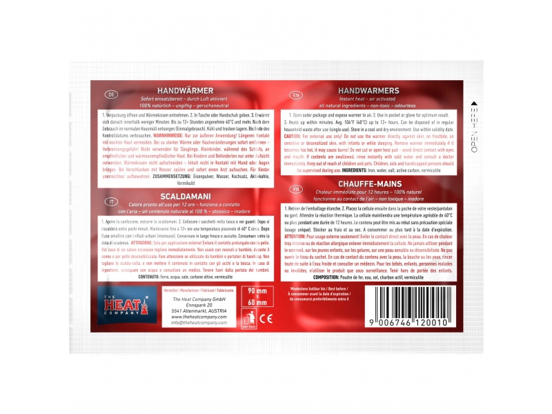 Jestliže trpíte ze studených rukou, nebo právě potřebujete trochu tepla ve vaší kapse, bundě, kalhotách, či rukavicích, jsou tyto výrobky určeny právě pro Vás. Hřející polštářky na ruce jsou malé, lehké, měkké a jsou zejména jemnou formou komfortu. Po té, co přestane hřející polštářek na ruce hřát, jej vyhoďte do běžného domácího odpadu.