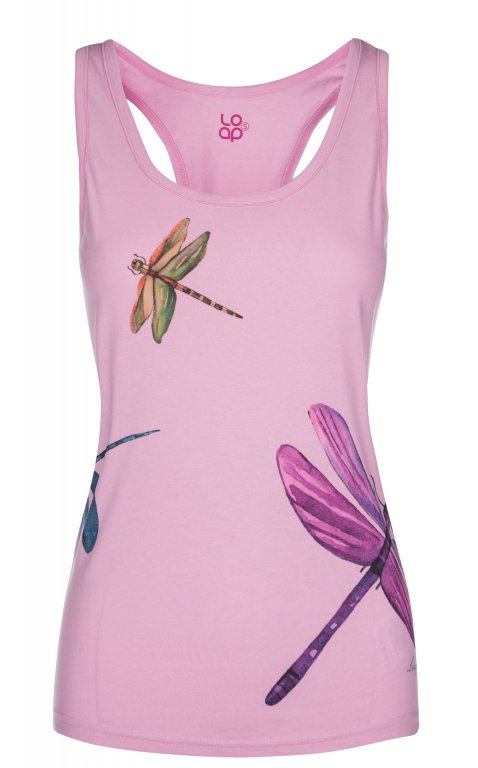 Někteří lidé si myslí, že vážky žijí jen u vody. Ale není to pravda – jsou i na dámském tílku BILBOA. Dá se nosit po celý rok, jen za chladného počasí vám asi bude líto, že musíte tak hezký vzor schovat pod svetr.