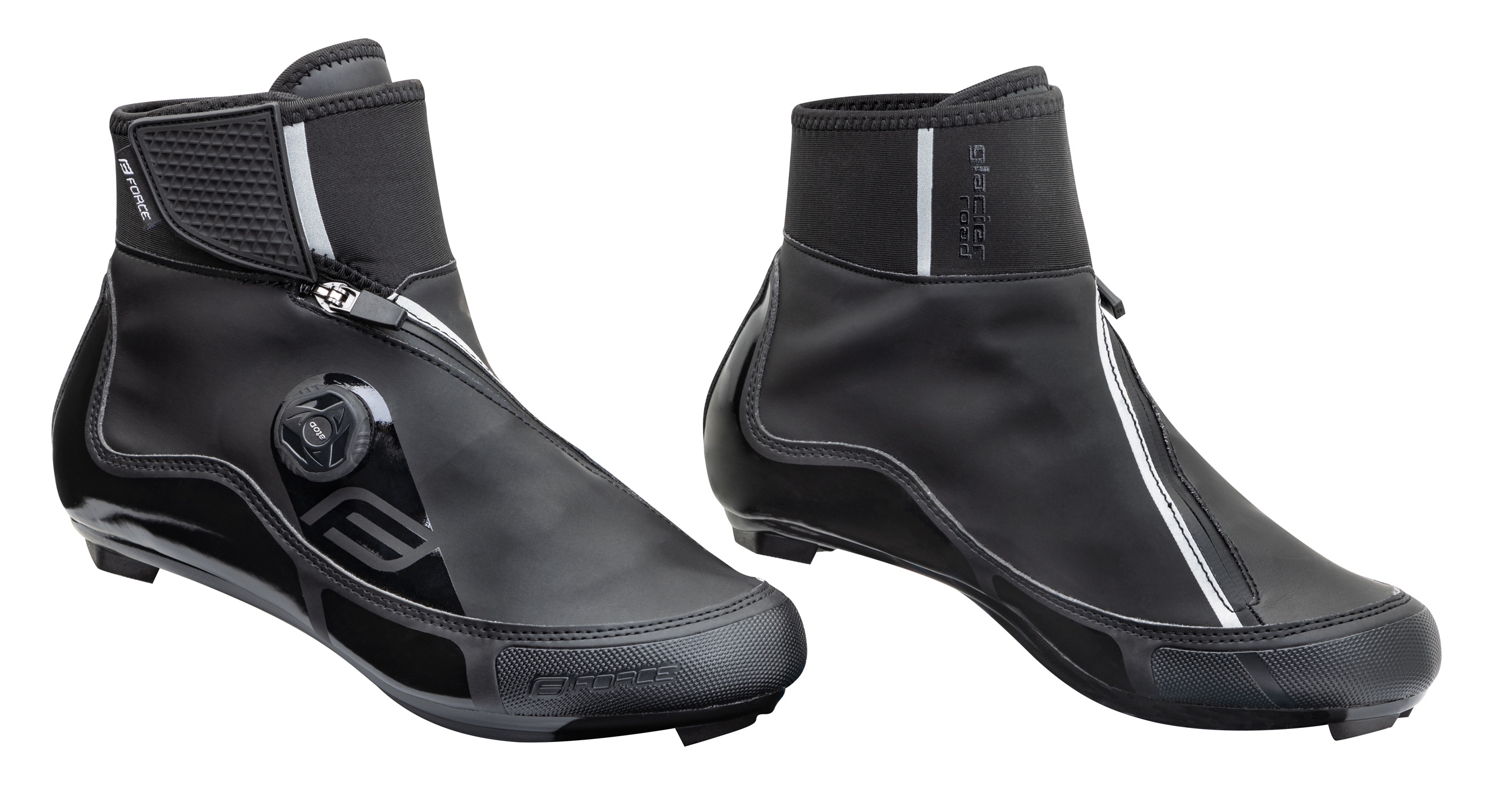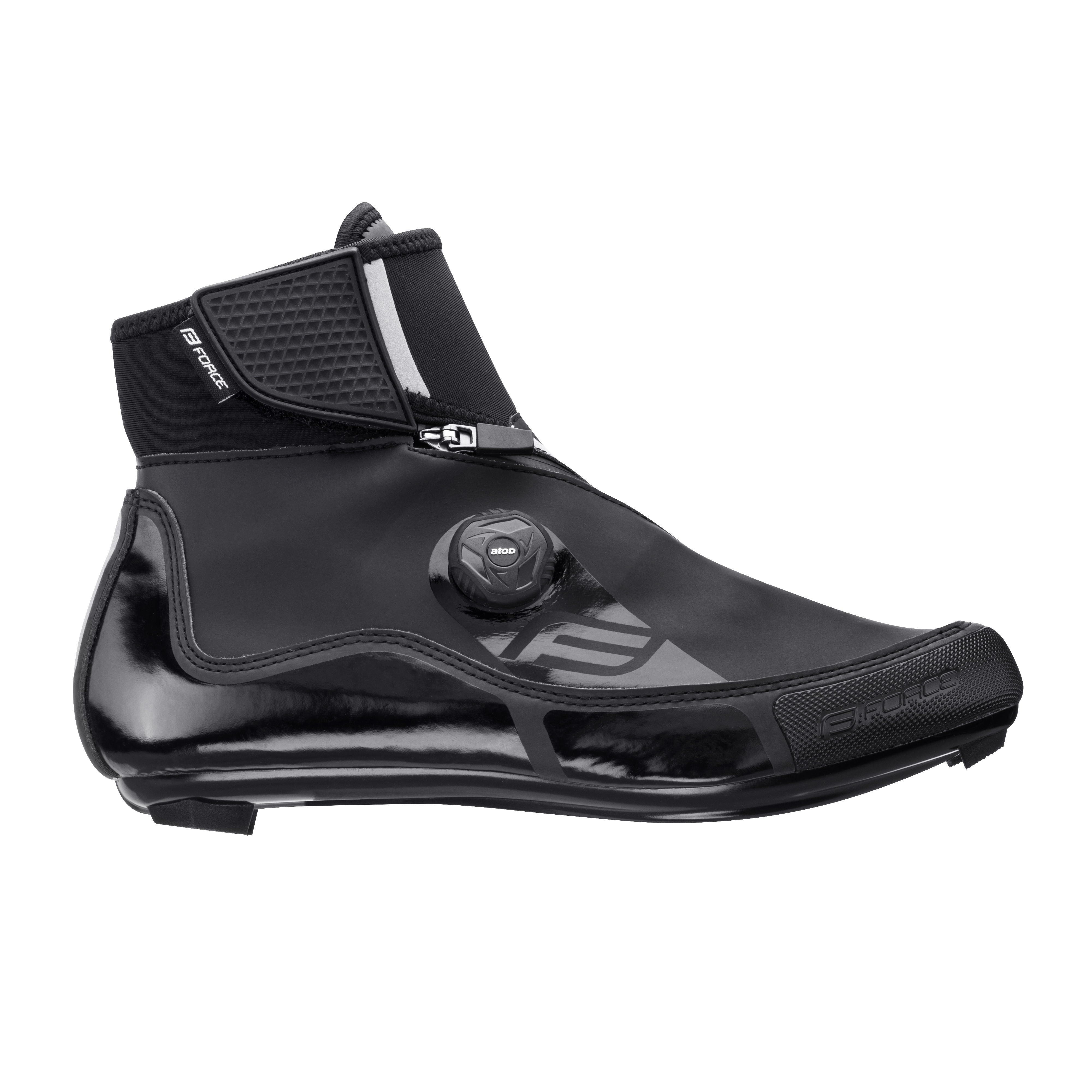 podešev: nylonový kompozit index tuhosti: 6 hmotnost: 355 g (1/2 páru vel. 42) zapínání na ATOP kolečko A-A41 a suchý zip vyztužená pata a špička určení pro teploty v rozmezí -5 °C až +5 °C špička chráněna gumovým okrajem proti okopu nepromokavý neoprenový materiál zapínání chráněno nepromokavým zipem zateplená vnitřní část anatomická zateplená vložka vnitřní část z protiskluzového materiálu LOOK, SPD-SL kompatibilní reflexní prvky možnost koupit náhradní kolečko zarážky nejsou součástí velikosti odpovídají standardu civilní obuvi baleno v krabici FORCE