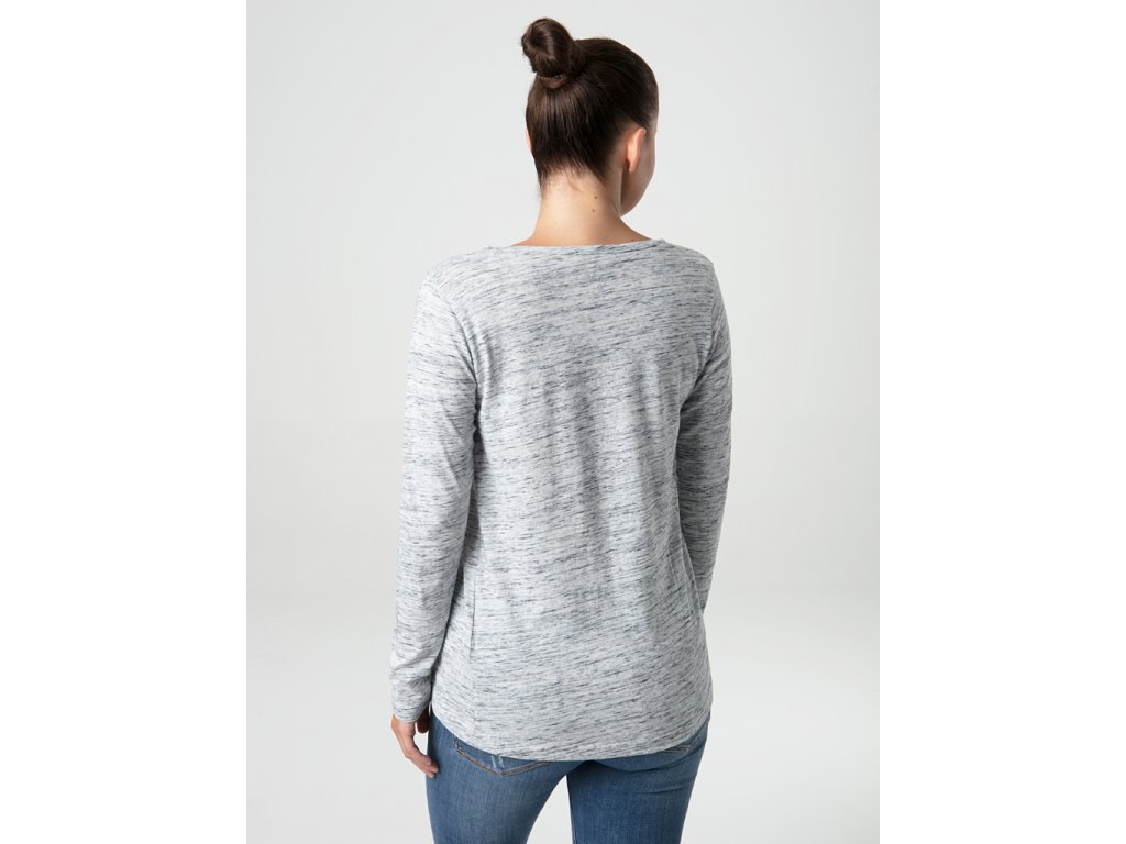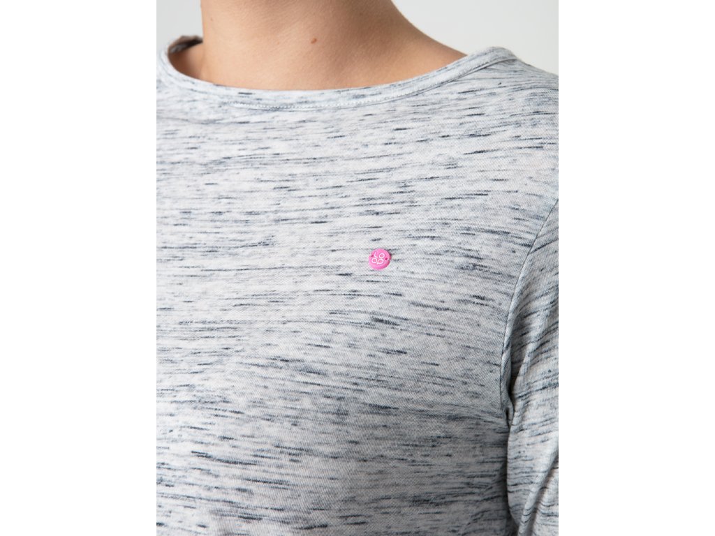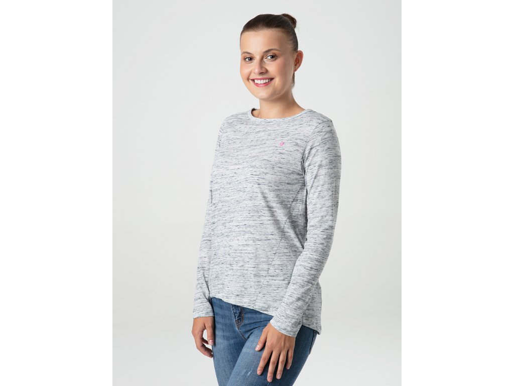 Lehké žíhané dámské triko s dlouhým rukávem BERUNA je volnější přes boky, má lodičkový výstřih a prodloužený zadní díl. Díky bavlně se příjemně nosí a díky příměsi polyesteru lépe drží tvar a méně se mačká. Je ideální na běžné nošení do práce nebo do školy, na volnočasové aktivity i cestování od podzimu do jara. Modelka je vysoká 174 cm a má na sobě velikost S.