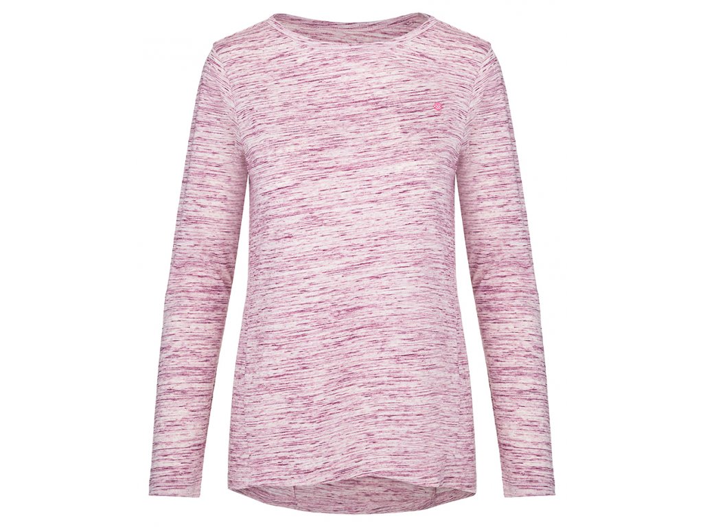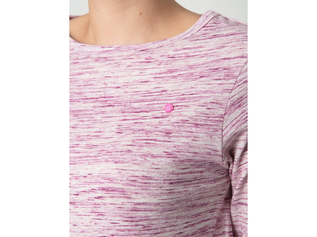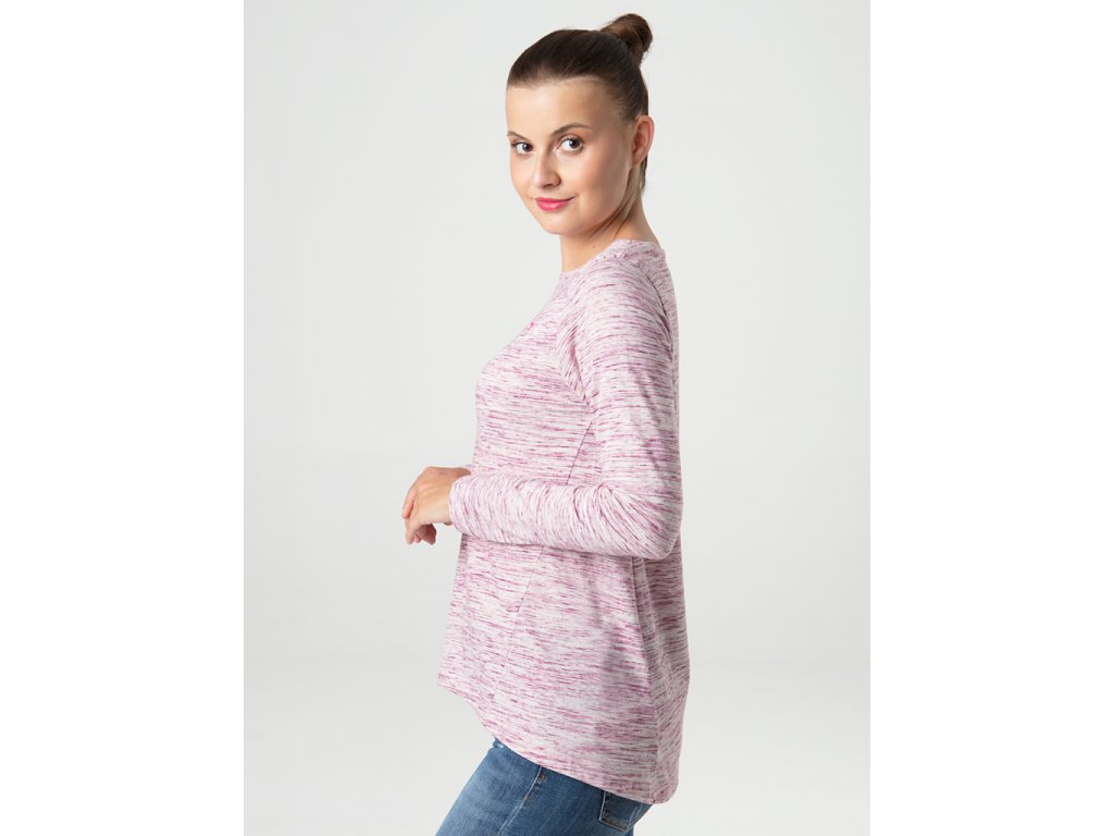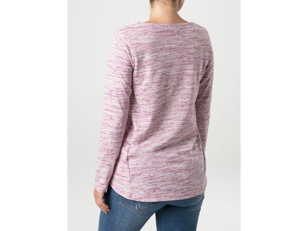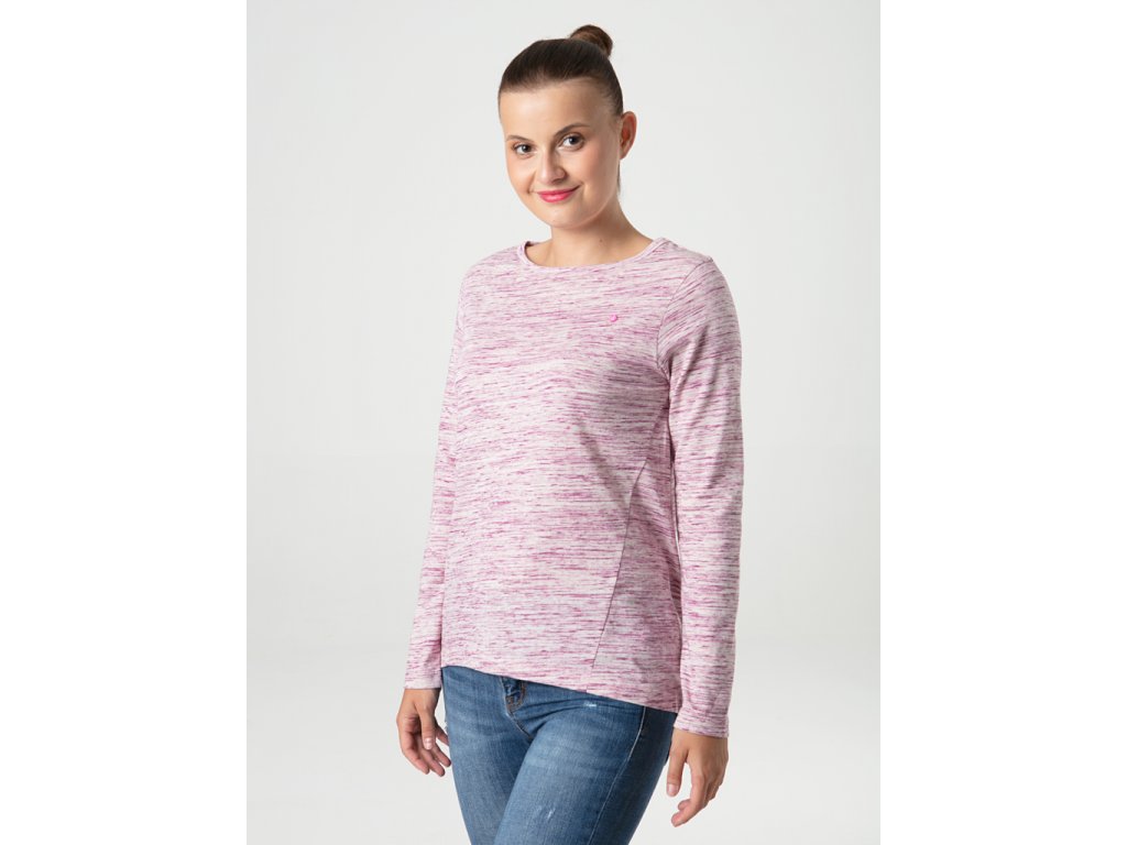 Lehké žíhané dámské triko s dlouhým rukávem BERUNA je volnější přes boky, má lodičkový výstřih a prodloužený zadní díl. Díky bavlně se příjemně nosí a díky příměsi polyesteru lépe drží tvar a méně se mačká. Je ideální na běžné nošení do práce nebo do školy, na volnočasové aktivity i cestování od podzimu do jara. Modelka je vysoká 174 cm a má na sobě velikost S.