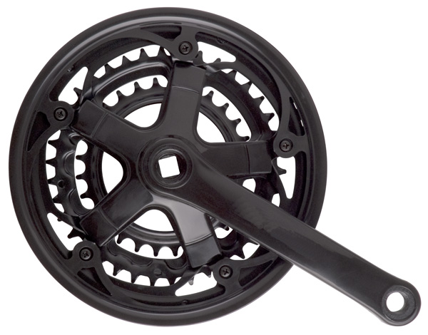 trojpřevodník s krytem pro 6/7 kolo, ocelové převodníky 48/38/28, nýtované, plastový kryt,délka klik 170 mm, doporučená délka osy 122 mm